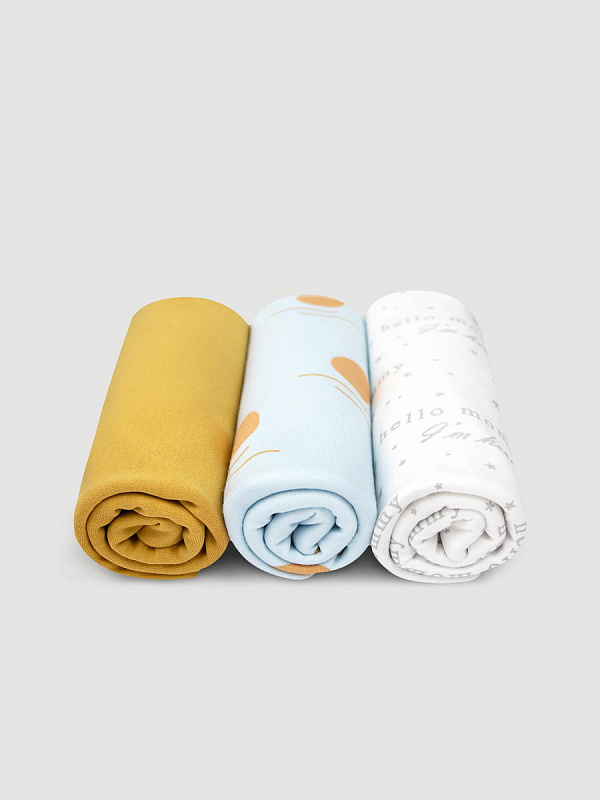 Пелёнки Mjolk трикотажные 3 шт 120х85 см Hello Mommy/Новый день/Mustard