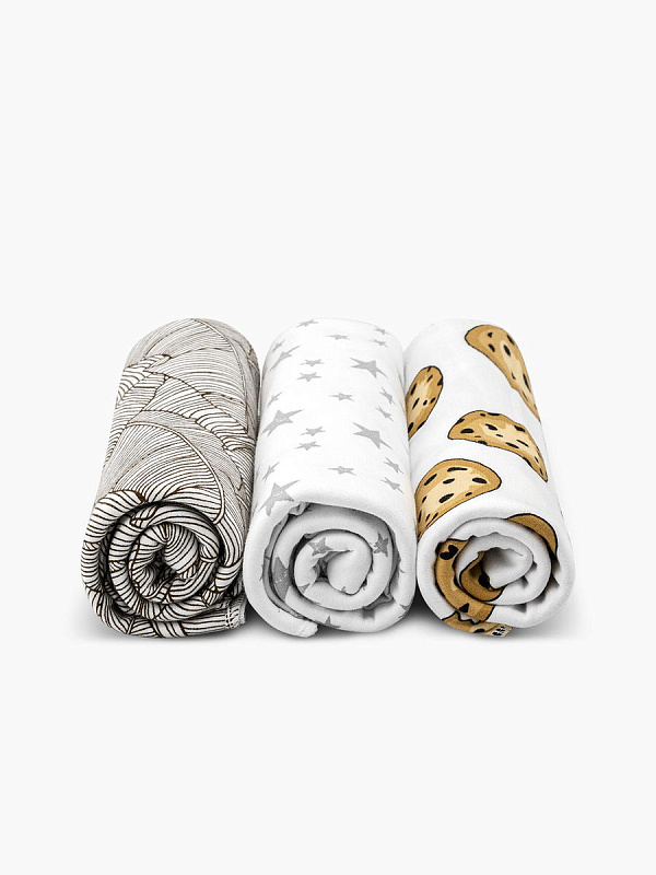 Пелёнки Mjolk трикотажные 3 шт 120х85 см Печенье/Palm Tree/Звёзды