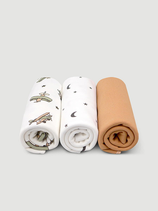 Пелёнки Mjolk трикотажные 3 шт 120х85 см Самолёты/Camel/Ночное небо