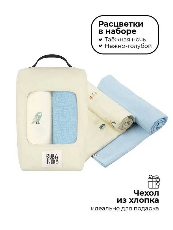 Пелёнки муслиновые Buba Kids, 2 шт, 75х115 см BKMUSSW15 Таежная ночь/ нежно-голубойНет оценокХарактеристики