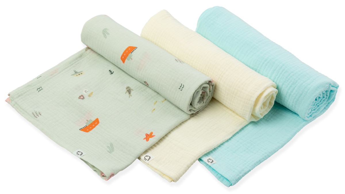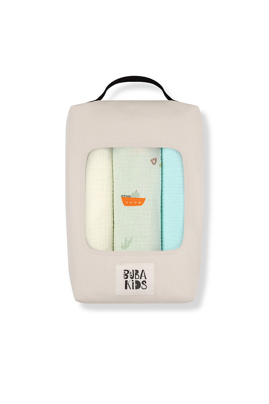Пелёнки муслиновые Buba Kids, 3 шт, 75х75 см BKMUSSW11 Тихий океан/ бирюза/ сливочный