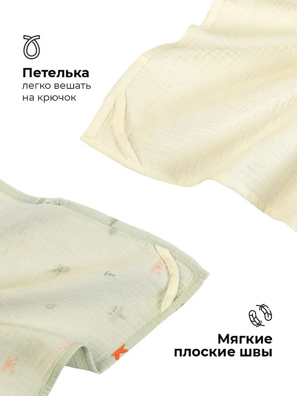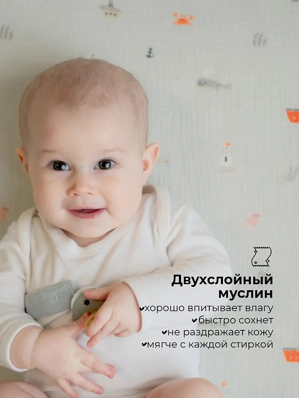 Несмотря на свою воздушность, муслин прочный и долговечный, с каждой стиркой становится только мягче. Пелёнки изготовлены с плоскими деликатными швами и с использованием безопасных натуральных красителей.