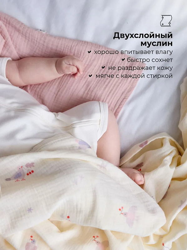 Несмотря на свою воздушность, муслин прочный и долговечный, с каждой стиркой становится только мягче. Пелёнки изготовлены с плоскими деликатными швами и с использованием безопасных натуральных красителей.