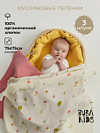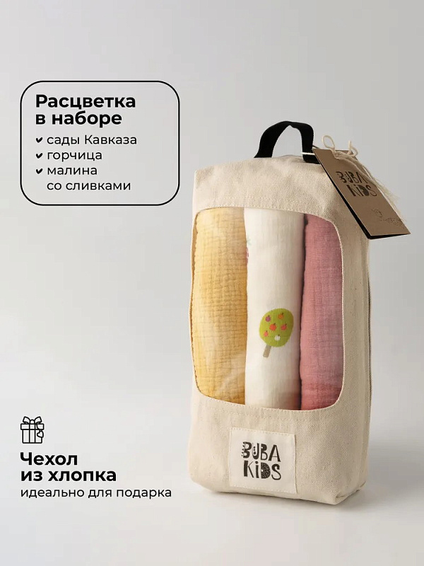 Пелёнки муслиновые Buba Kids, 3 шт, 75х75 см BKMUSSW49 Сады Кавказа/ горчица/ малина со сливками
