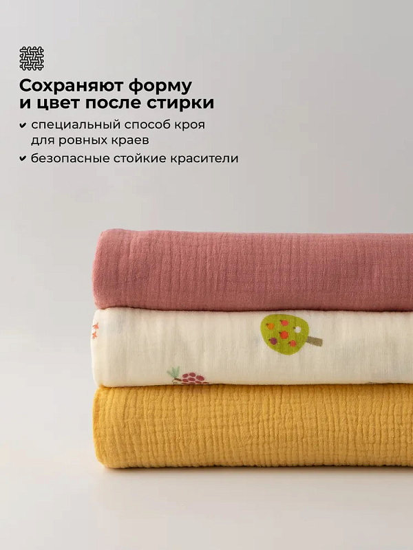 Пелёнки муслиновые Buba Kids, 3 шт, 75х75 см BKMUSSW49 Сады Кавказа/ горчица/ малина со сливкамиНет оценокХарактеристики