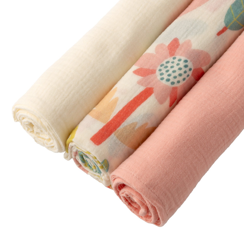 Пелёнки муслиновые Buba Kids, 3 шт, 75х75 см BKMUSSW53 Летний полдень/ сливочный/ персиковый