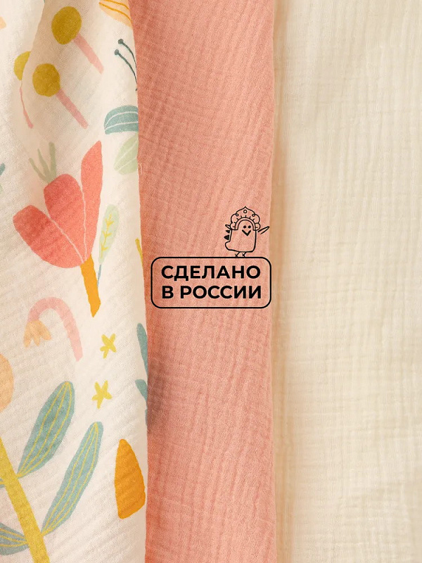 Несмотря на свою воздушность, муслин прочный и долговечный, с каждой стиркой становится только мягче. Пелёнки изготовлены с плоскими деликатными швами и с использованием безопасных натуральных красителей.