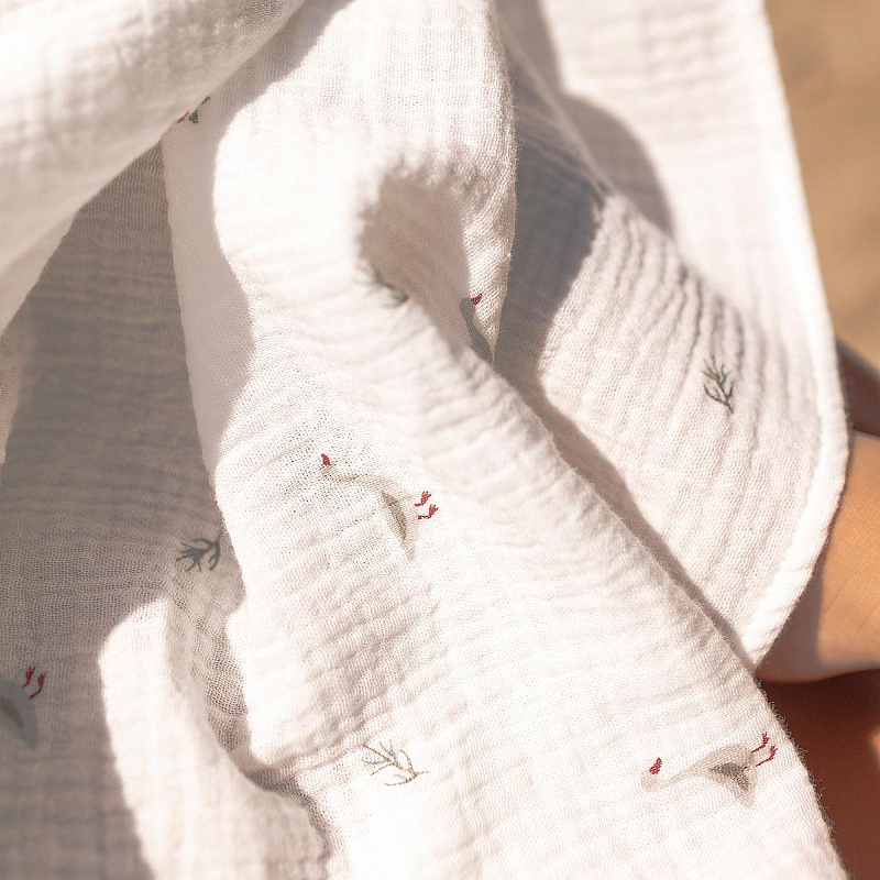 Ткань - премиальный жатый муслин высокого качества. Такая ткань хорошо пропускает воздух, прекрасно впитывает воду и быстро сохнет.