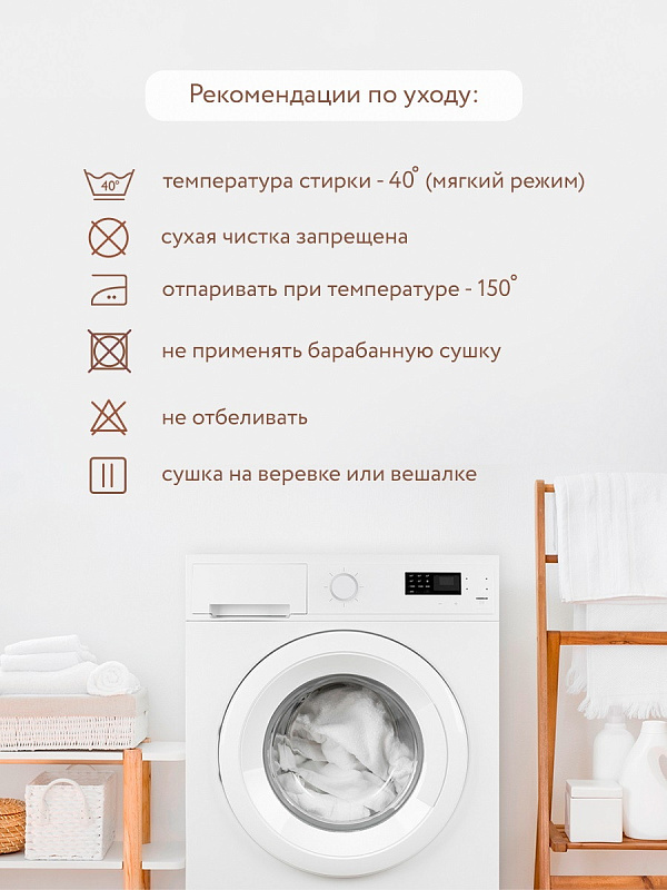 Ткань - премиальный жатый муслин высокого качества. Такая ткань хорошо пропускает воздух, прекрасно впитывает воду и быстро сохнет.