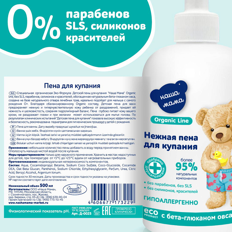 Пена для купания Наша мама Organic Line детская, 500 мл