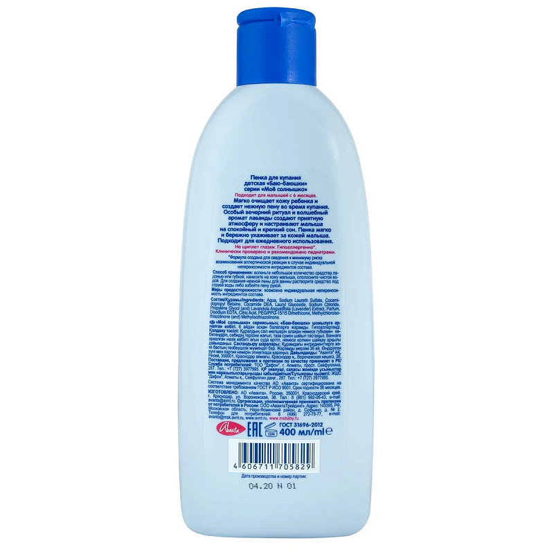 Мягко очищает кожу ребенка и создает нежную пену во время купания. Особый вечерний ритуал и волшебный аромат лаванды создают приятную атмосферу и настраивают малыша на спокойный и крепкий сон. Пенка мягко и бережно ухаживает за кожей малыша. Подходит для ежедневного использования.
