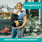 Hip Seat Carrier состоит из переноски-кенгуру и поддерживающей базы-сидения. В этом случае база-сидение обеспечивает комфортную и естественную позицию для ребенка и помогает равномерно распределить вес малыша вокруг тела родителя.