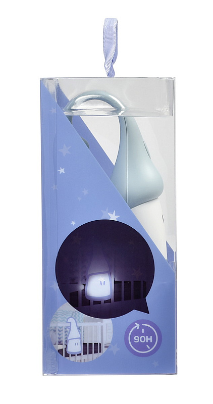 - Простота в использовании: c помощью одной кнопки ночник превращается в фонарик, сопровождающий движения или игры ребенка ночью;