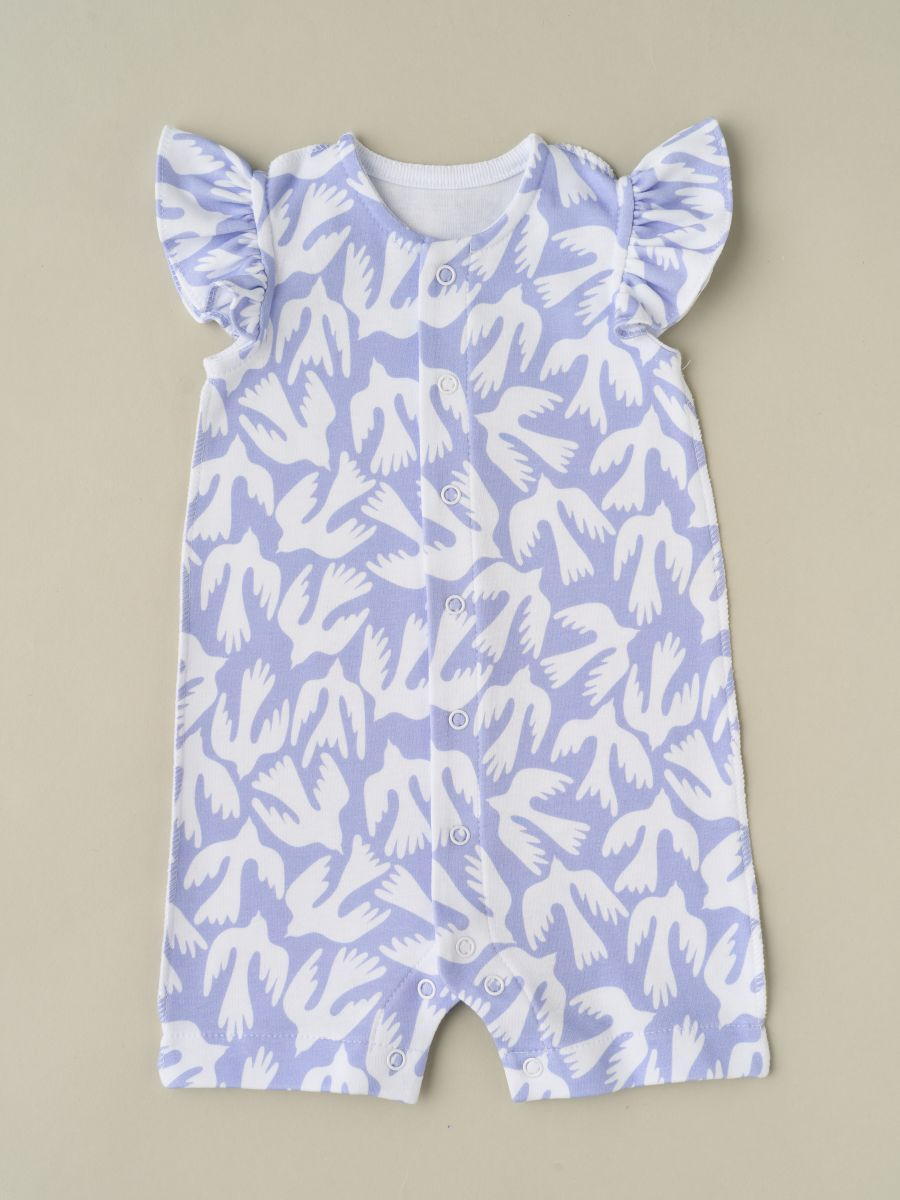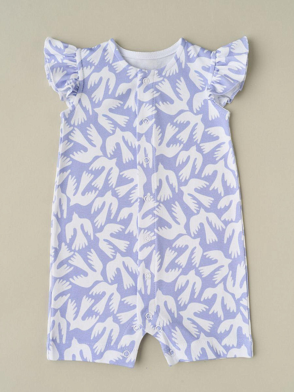 Трикотажный песочник для девочки, 100% хлопок с очаровательными рукавами-крылышками и застёжкой на кнопки по всей длине спереди. Натуральный мягкий трикотаж «дышит», быстро впитывает влагу и подходит для ежедневной носки дома, на прогулке и в поездках. Для этого артикула доступно много разных рисунков: аккуратный принт впечатан в ткань, не боится утюга, выдерживает множество стирок и не выцветает. В размере 62 выполнены швы наружу для максимального комфорта новорождённой кожи; с 68 по 92 размеры — швы внутри в классическом исполнении. Удобные кнопки между ножками помогают быстро сменить подгузник, свободный силуэт не стесняет движения. Ищете милый летний комбинезон для девочки из хлопка? Это удачный выбор как на каждый день, так и в подарок новорождённой.