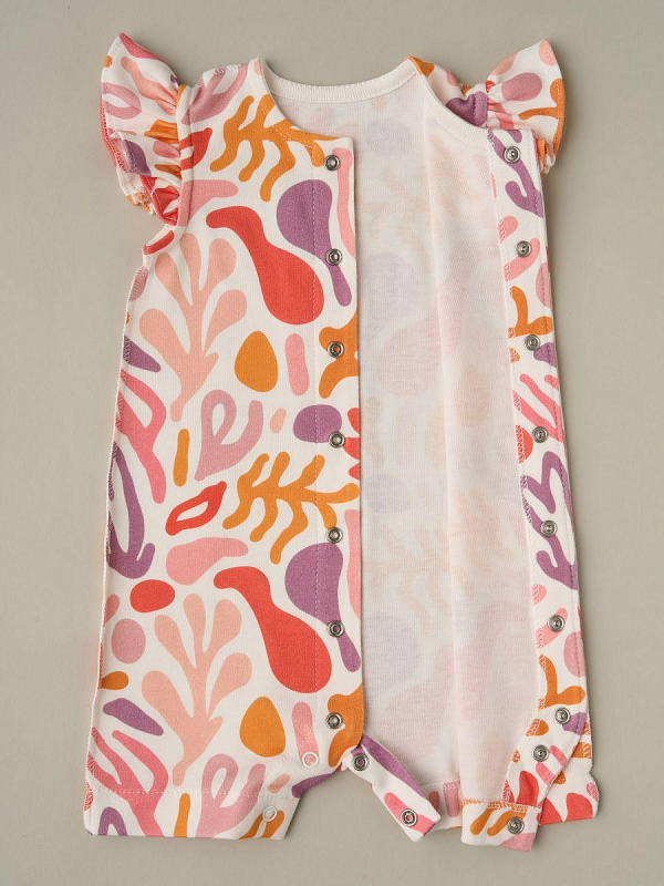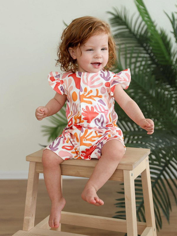 Стильный песочник для девочки с очаровательным принтом “Разноцветные узоры” - воплощение комфорта и нежности для вашего ребенка.