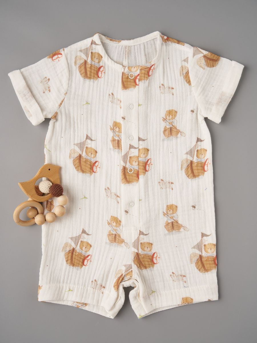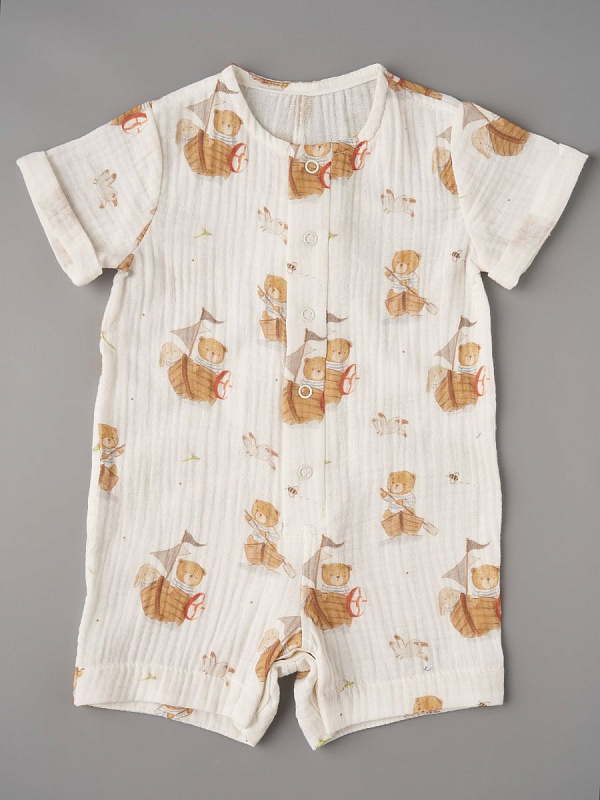 Песочник выполнен из мягкого хлопкового материала. Удобная модель, позволит легко и быстро переодевать малыша. Кнопки расположены по центру. Также предусмотрены кнопки для быстрой смены подгузника.