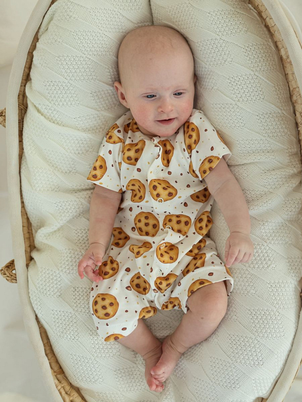 Песочник выполнен из мягкого трикотажа. Удобная модель, позволит легко и быстро переодевать малыша. Кнопки расположены по центру, сверху донизу.