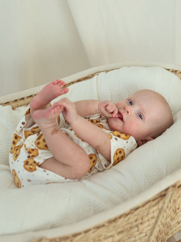 Песочник выполнен из мягкого трикотажа. Удобная модель, позволит легко и быстро переодевать малыша. Кнопки расположены по центру, сверху донизу.