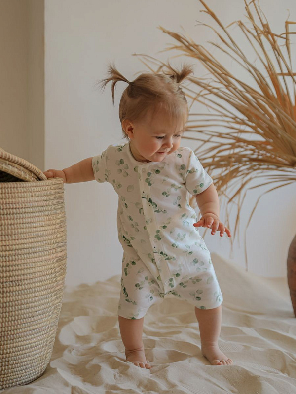 Песочник выполнен из мягкого трикотажа. Удобная модель, позволит легко и быстро переодевать малыша. Кнопки расположены по центру, сверху донизу.