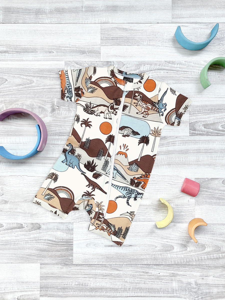 Песочник Mjölk [мьёльк] Sleep and Play Dinoworld – это комбинезон на молнии с короткими рукавами и штанинами, выполненный из плотного и очень мягкого трикотажа.