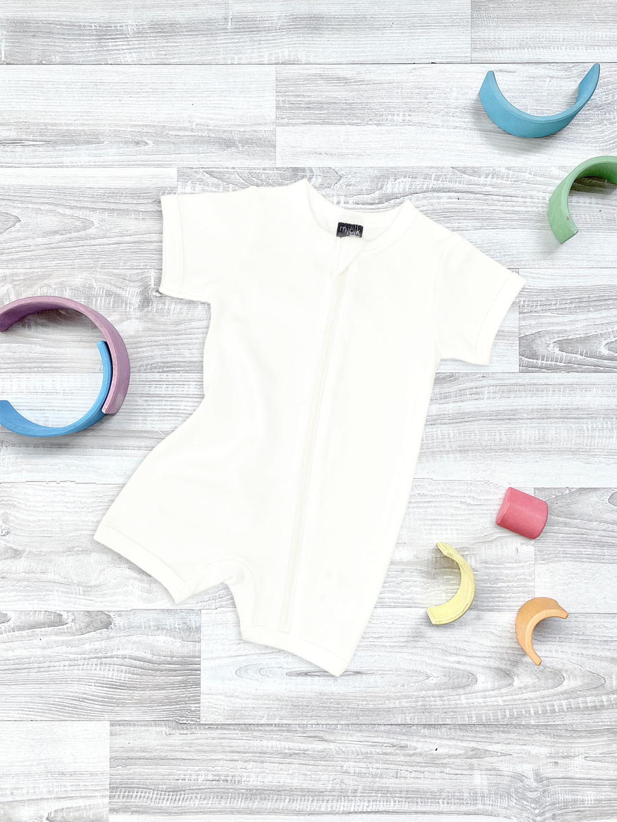 Песочник Mjölk [мьёльк] Sleep and Play – это комбинезон на молнии с короткими рукавами и штанинами, выполненный из плотного и очень мягкого трикотажа.