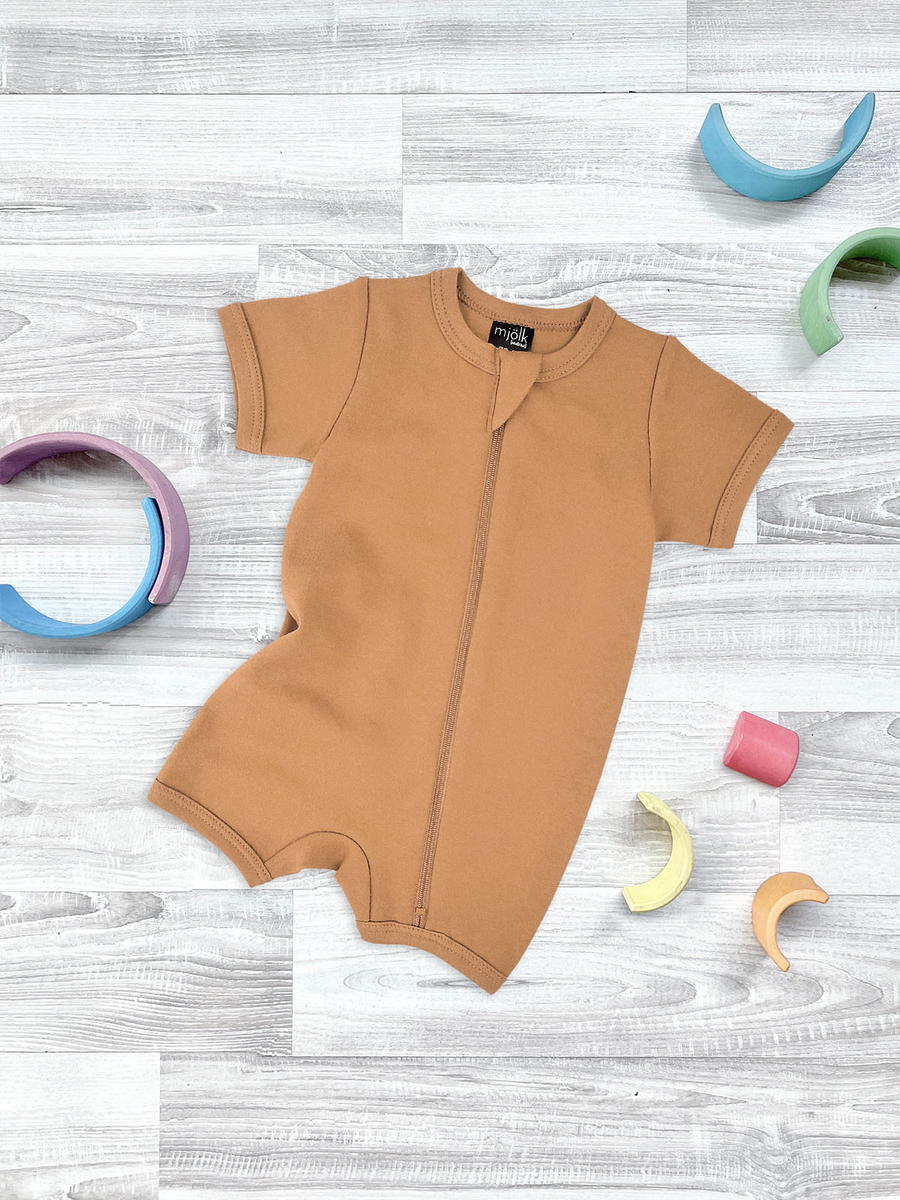 Песочник Mjölk [мьёльк] Sleep and Play Camel – это комбинезон на молнии с короткими рукавами и штанинами, выполненный из плотного и очень мягкого трикотажа.
