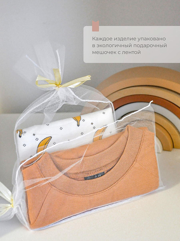 Песочник упакован в нежный фатиновый мешочек с лентой и станет отличным подарком любому, у кого в семье есть малыш.