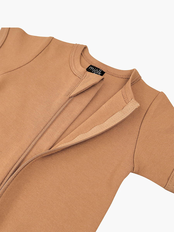 Песочник Mjölk [мьёльк] Sleep and Play Camel – это комбинезон на молнии с короткими рукавами и штанинами, выполненный из плотного и очень мягкого трикотажа.
