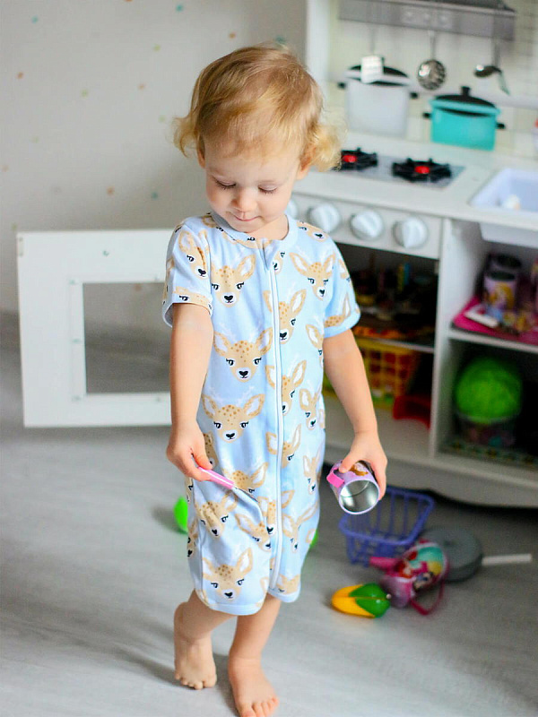 Песочник подойдёт для носки круглый год в качестве мягкой пижамки, а также самостоятельной одежды в тёплое время года.