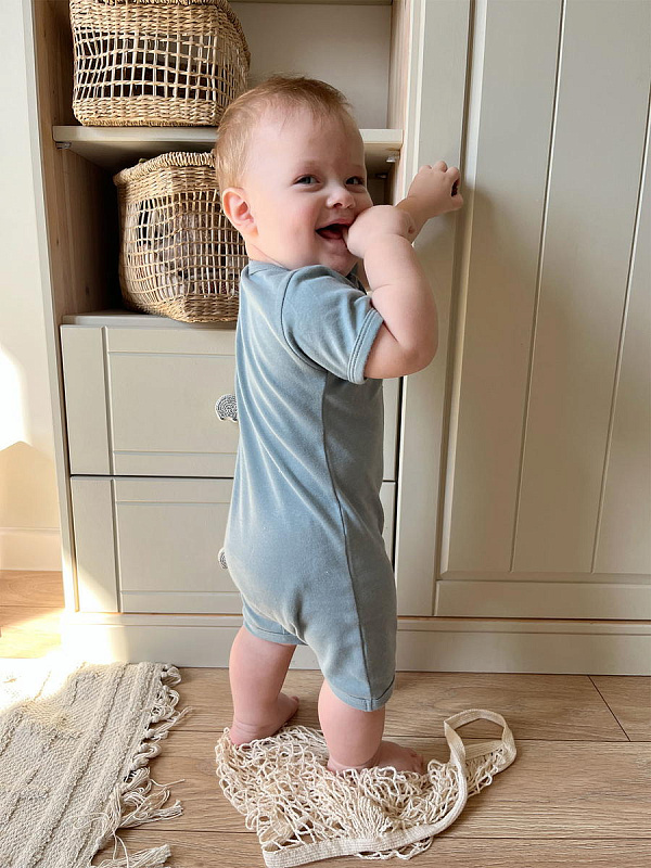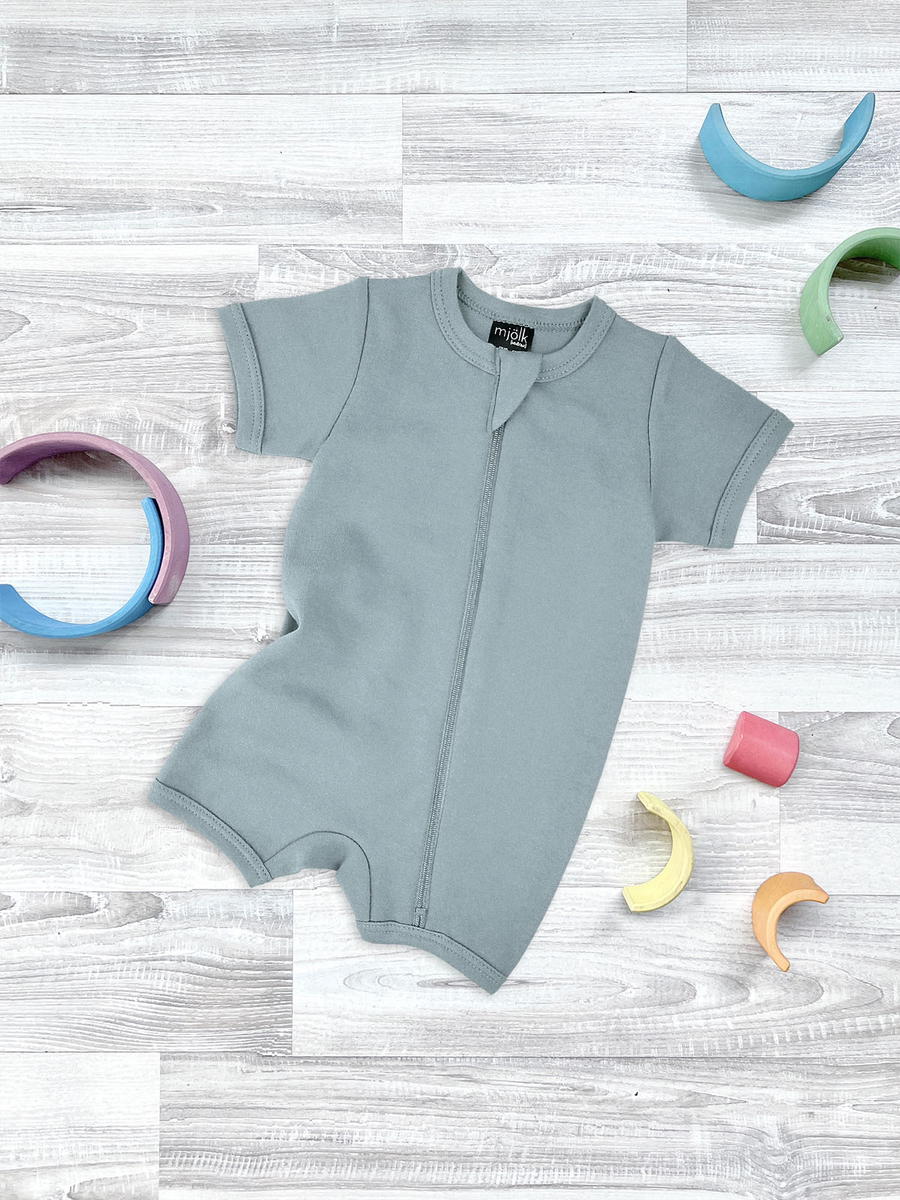 Песочник Mjölk [мьёльк] Sleep and Play Baby Blue – это комбинезон на молнии с короткими рукавами и штанинами, выполненный из плотного и очень мягкого трикотажа.