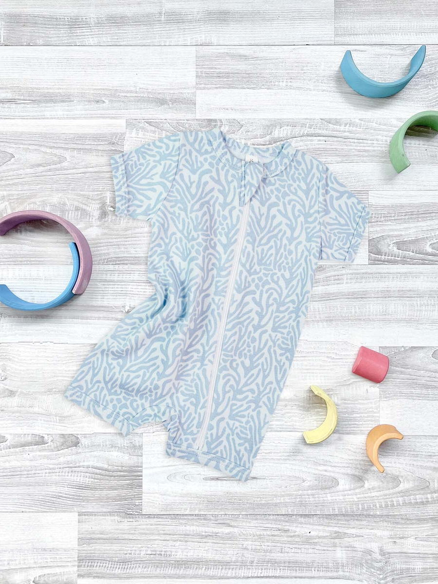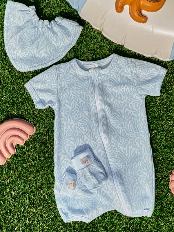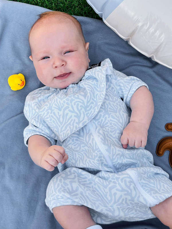 Песочник Mjölk [мьёльк] Sleep and Play Рифы – это комбинезон на молнии с короткими рукавами и штанинами, выполненный из плотного и очень мягкого трикотажа.