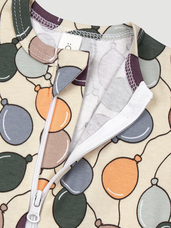 Молния изнутри защищена планкой, поэтому не соприкасается с нежной кожей малыша, а на вороте у шеи дополнительно нашит трикотажный язычок. Он закрывает бегунок и не даёт застёжке раскрыться.