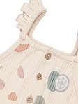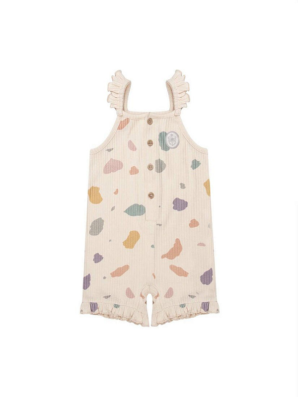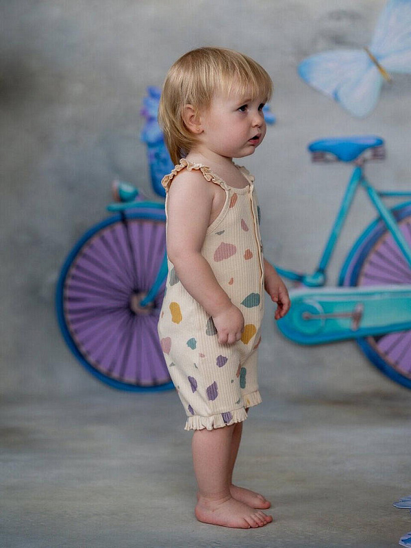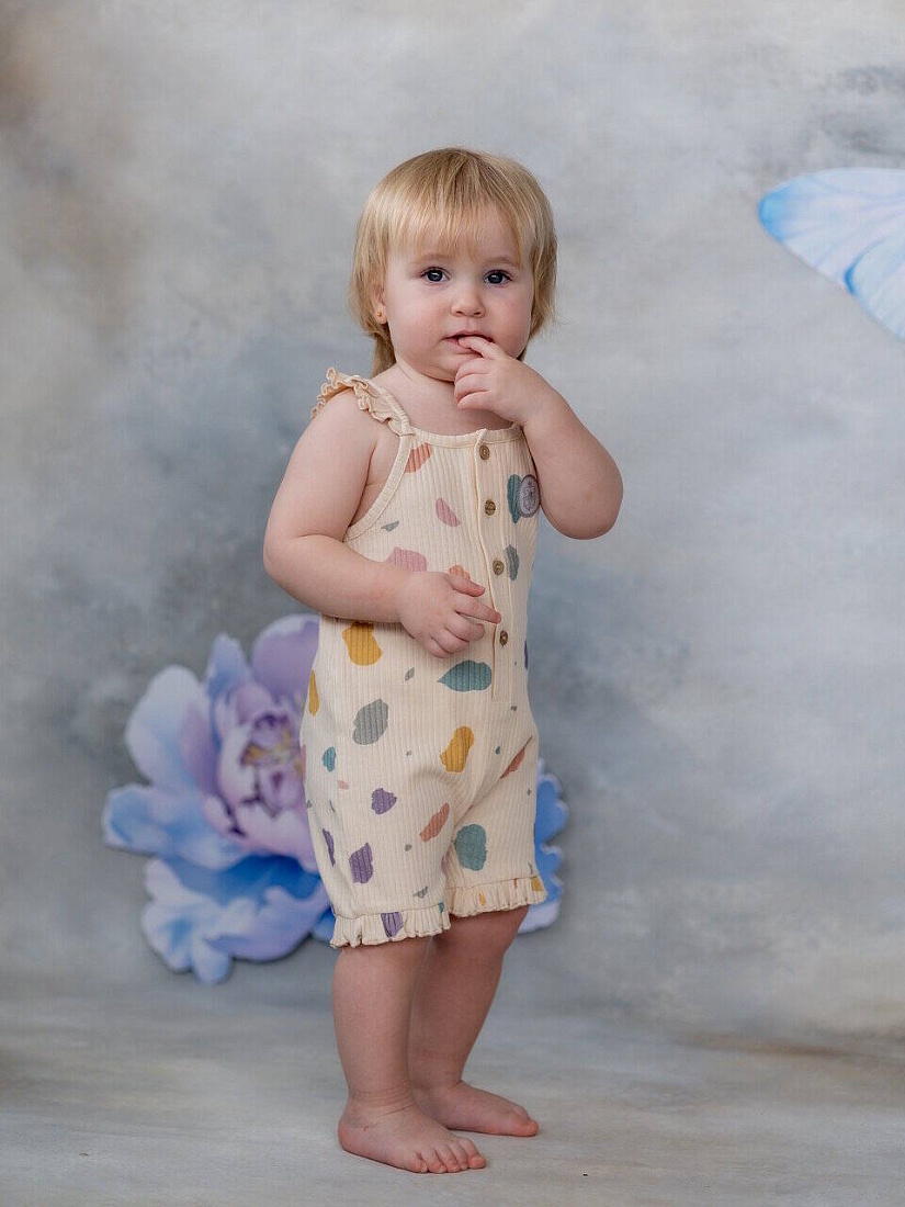 Комбинезон-песочник подходит для летних прогулок, а также для повседневной носки. Модель застегивается на пуговицы спереди, что позволит быстро снять и одеть песочник.