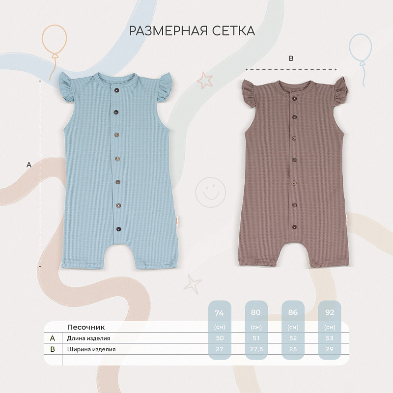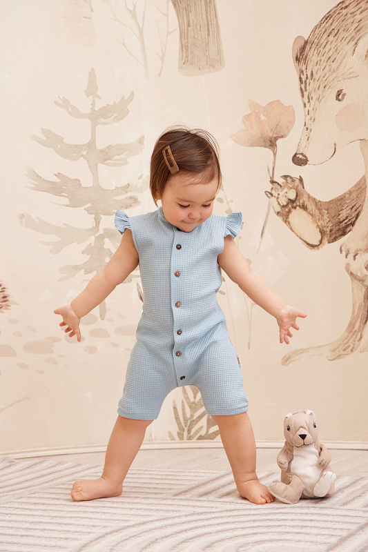 Эффектные ромперы подарят малышу отличное настроением даже в знойный день. Пуговицы по всей длине позволят с комфортом переодевать ребенка. А для маленьких модниц предусмотрены модели с очаровательными крылышками вместо рукавов. Песочники идеально подойдут для прогулок, путешествий и запоминающихся фотосессий.