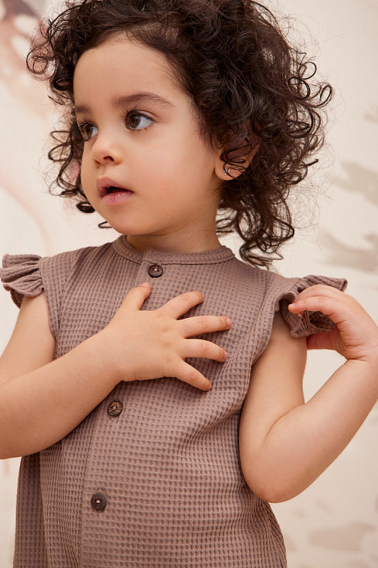 Эффектные ромперы подарят малышу отличное настроением даже в знойный день. Пуговицы по всей длине позволят с комфортом переодевать ребенка. А для маленьких модниц предусмотрены модели с очаровательными крылышками вместо рукавов. Песочники идеально подойдут для прогулок, путешествий и запоминающихся фотосессий.