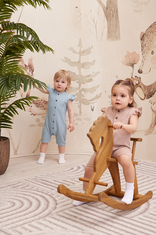 Эффектные ромперы подарят малышу отличное настроением даже в знойный день. Пуговицы по всей длине позволят с комфортом переодевать ребенка. А для маленьких модниц предусмотрены модели с очаровательными крылышками вместо рукавов. Песочники идеально подойдут для прогулок, путешествий и запоминающихся фотосессий.