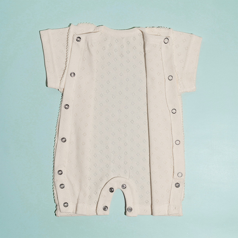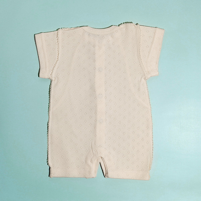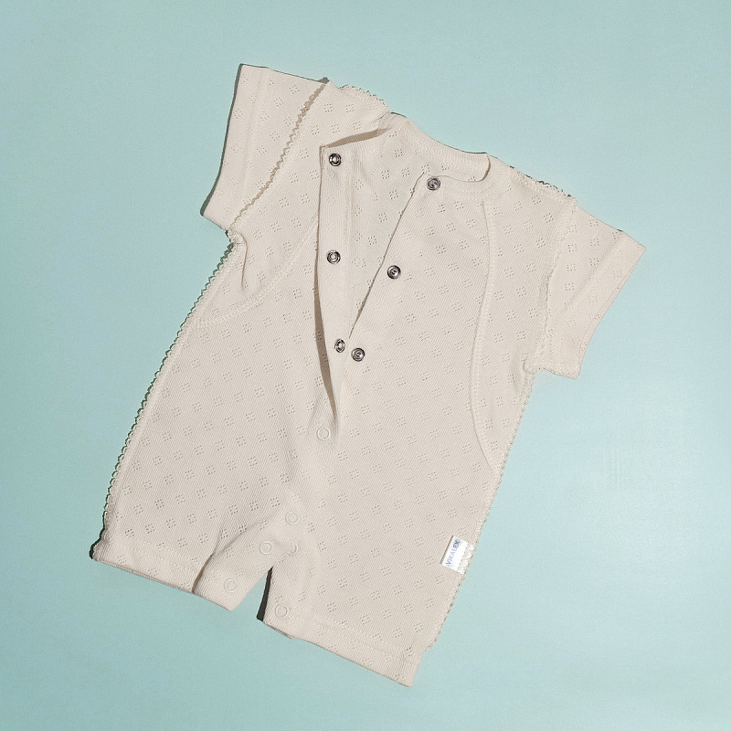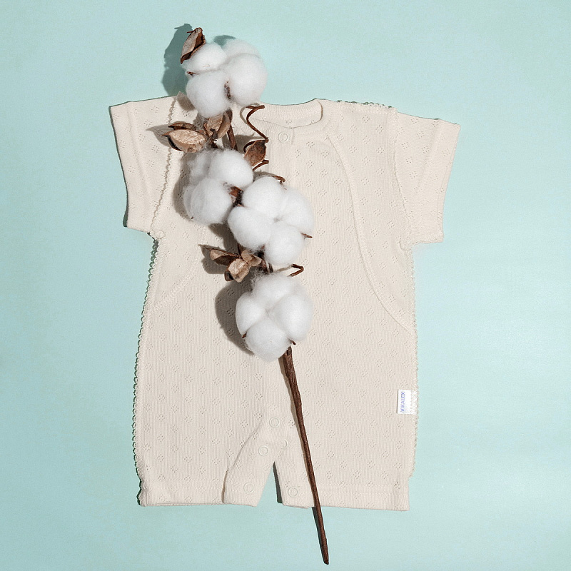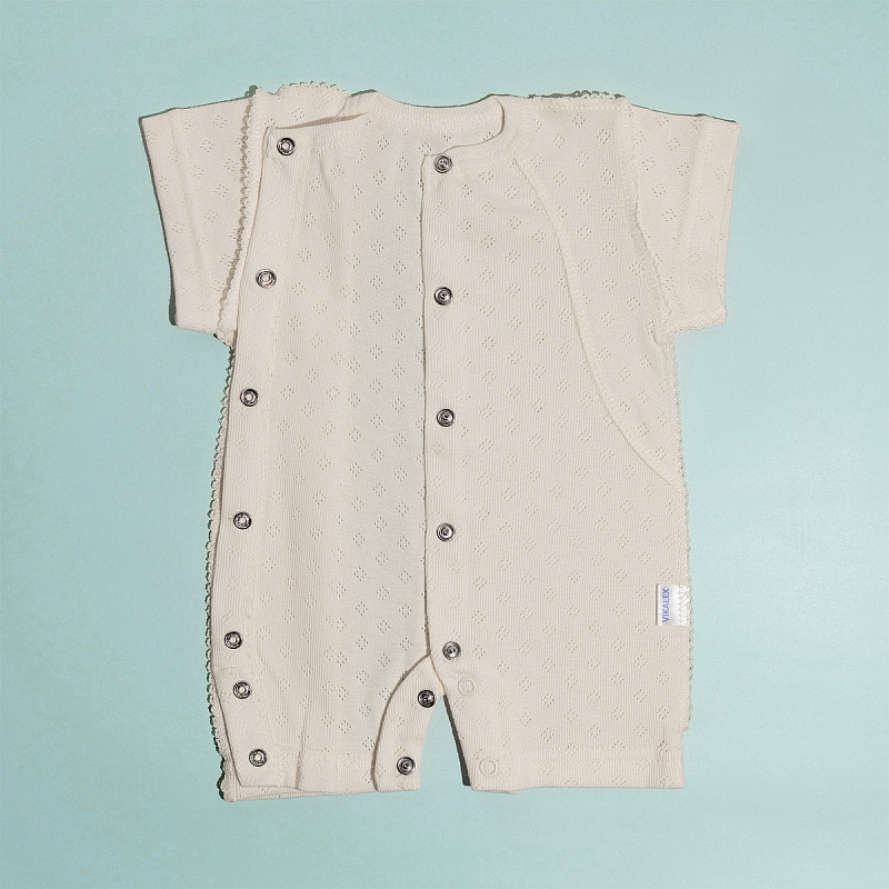 Песочник Vikalex «Ажур экрю» — идеальный выбор для вашего новорождённого малыша. Он изготовлен из высококачественного 100% хлопка (рибана) и оснащён удобными кнопками для комфортной носки.