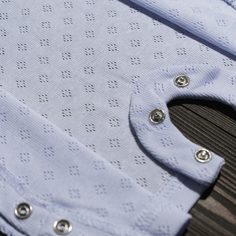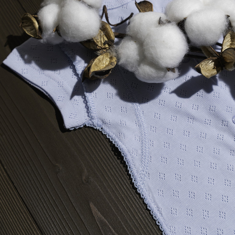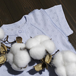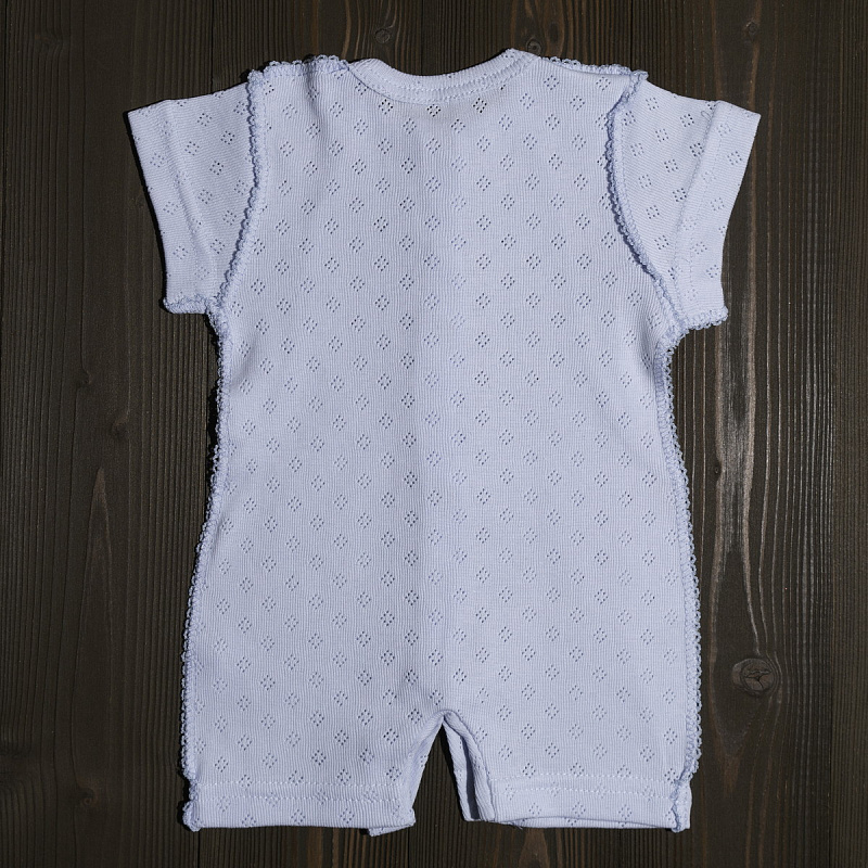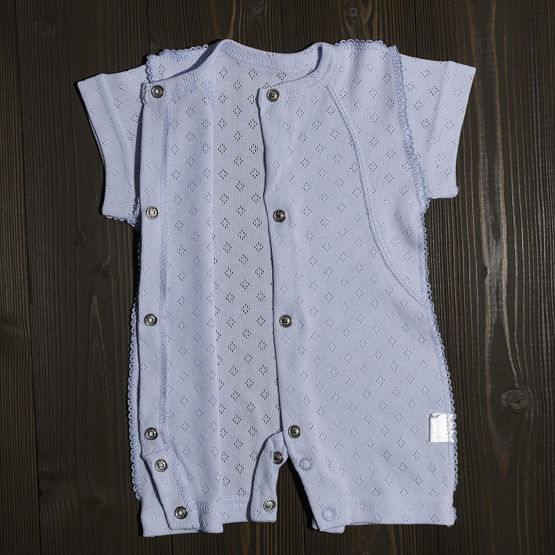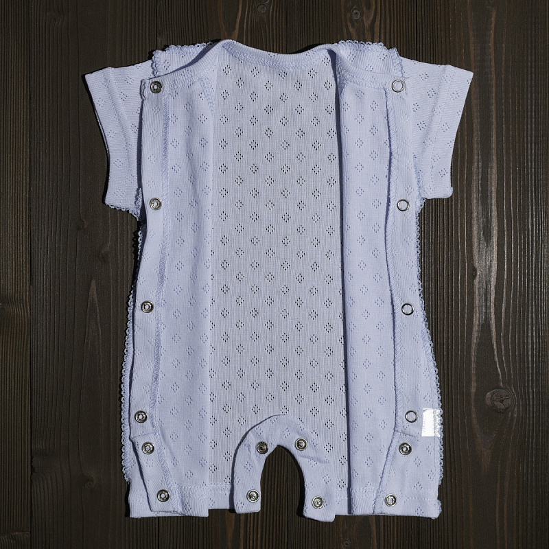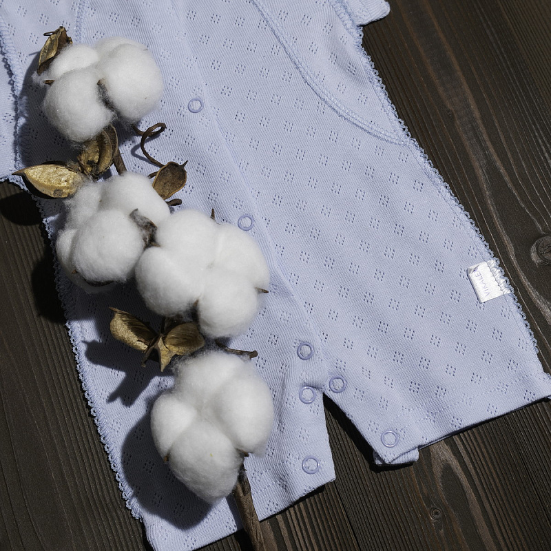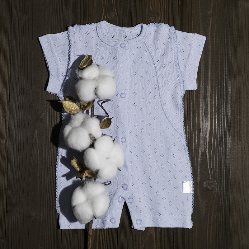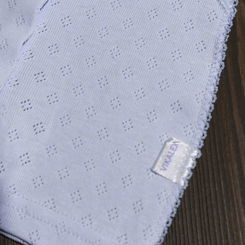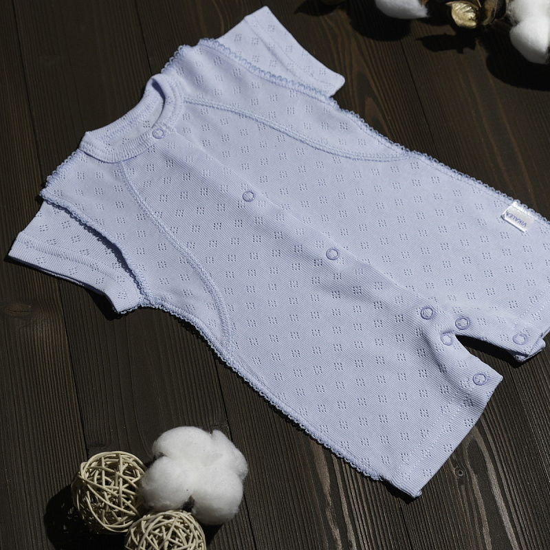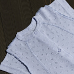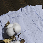 Песочник Vikalex «Ажур голубой» — идеальный выбор для вашего новорождённого малыша. Он изготовлен из высококачественного 100% хлопка (рибана) и оснащён удобными кнопками для комфортной носки.