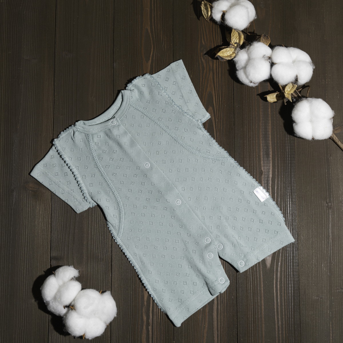 Песочник Vikalex Ажур полынь — идеальный выбор для вашего новорождённого малыша. Он изготовлен из высококачественного 100% хлопка (рибана) и оснащён удобными кнопками для комфортной носки.