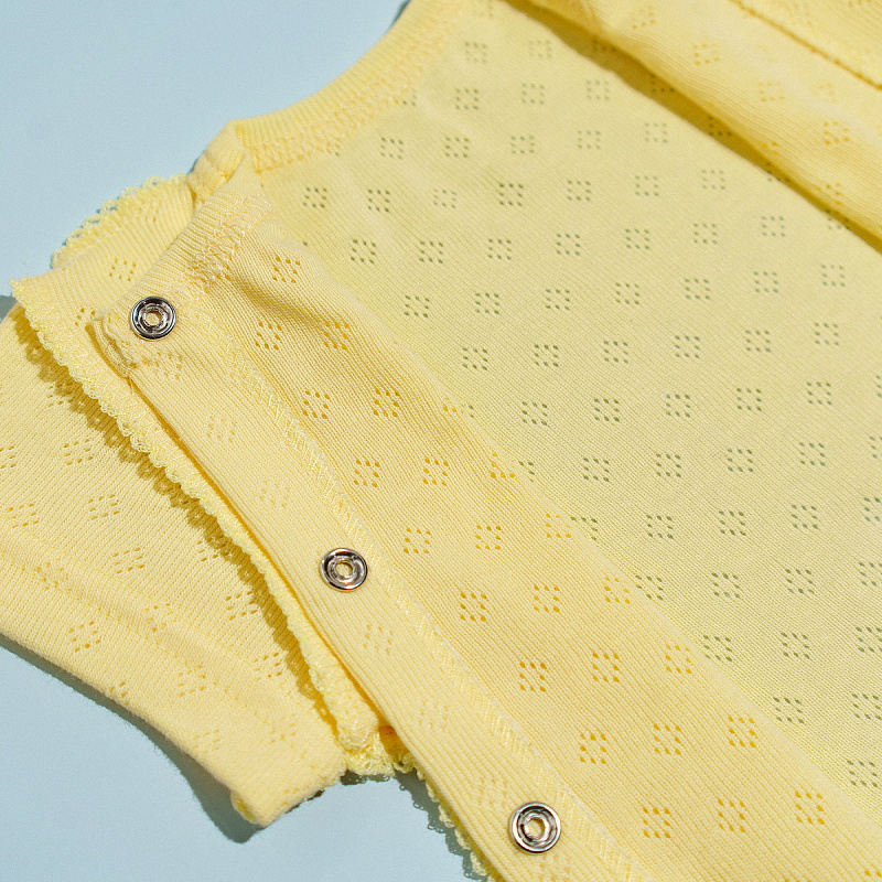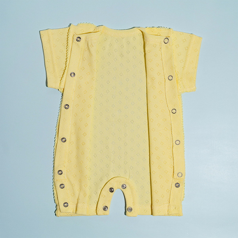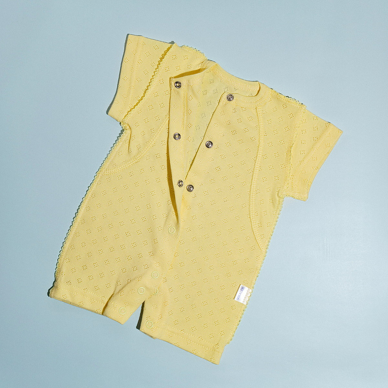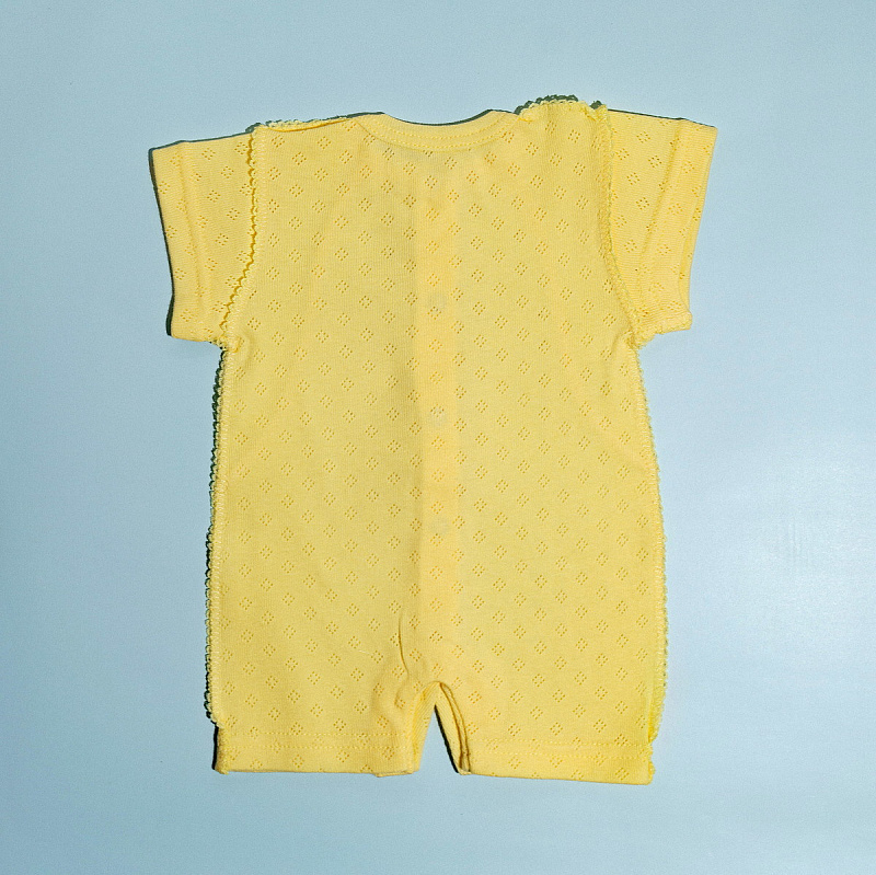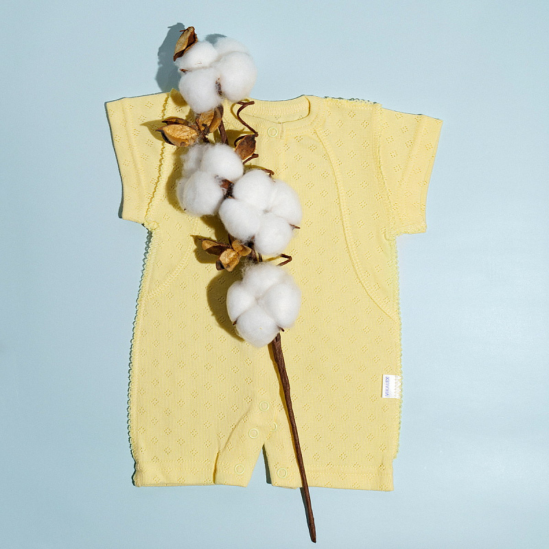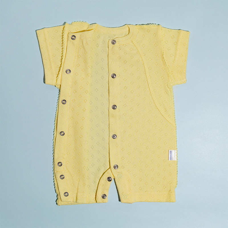 Песочник Vikalex «Ажур жёлтый» — идеальный выбор для вашего новорождённого малыша. Он изготовлен из высококачественного 100% хлопка (рибана) и оснащён удобными кнопками для комфортной носки.
