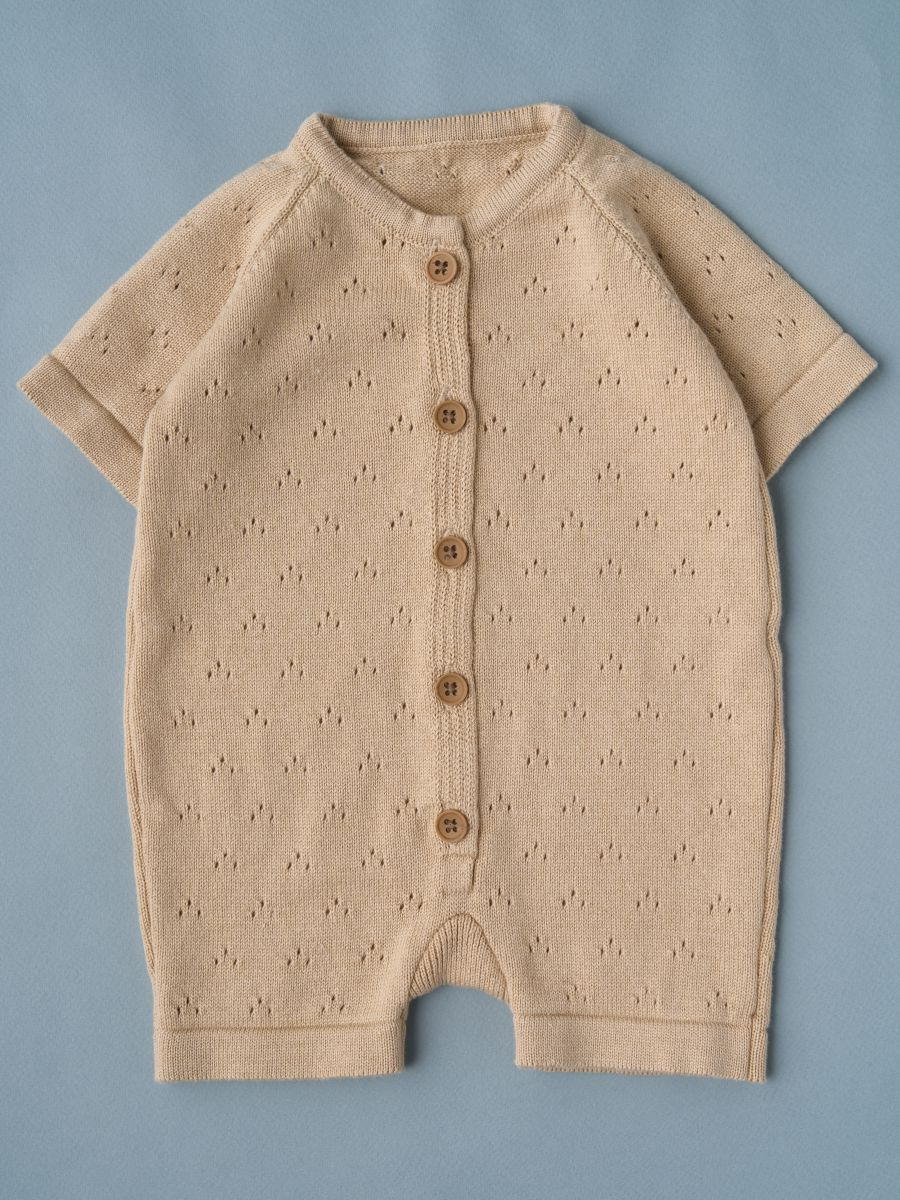 Песочник выполнен из мягкого вязаного трикотажа. Удобная модель, позволит легко и быстро переодевать малыша. Пуговицы расположены по центру, сверху донизу.
