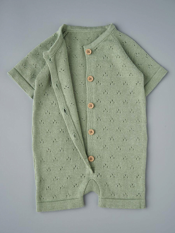 Песочник выполнен из мягкого вязаного трикотажа. Удобная модель, позволит легко и быстро переодевать малыша. Пуговицы расположены по центру, сверху донизу.