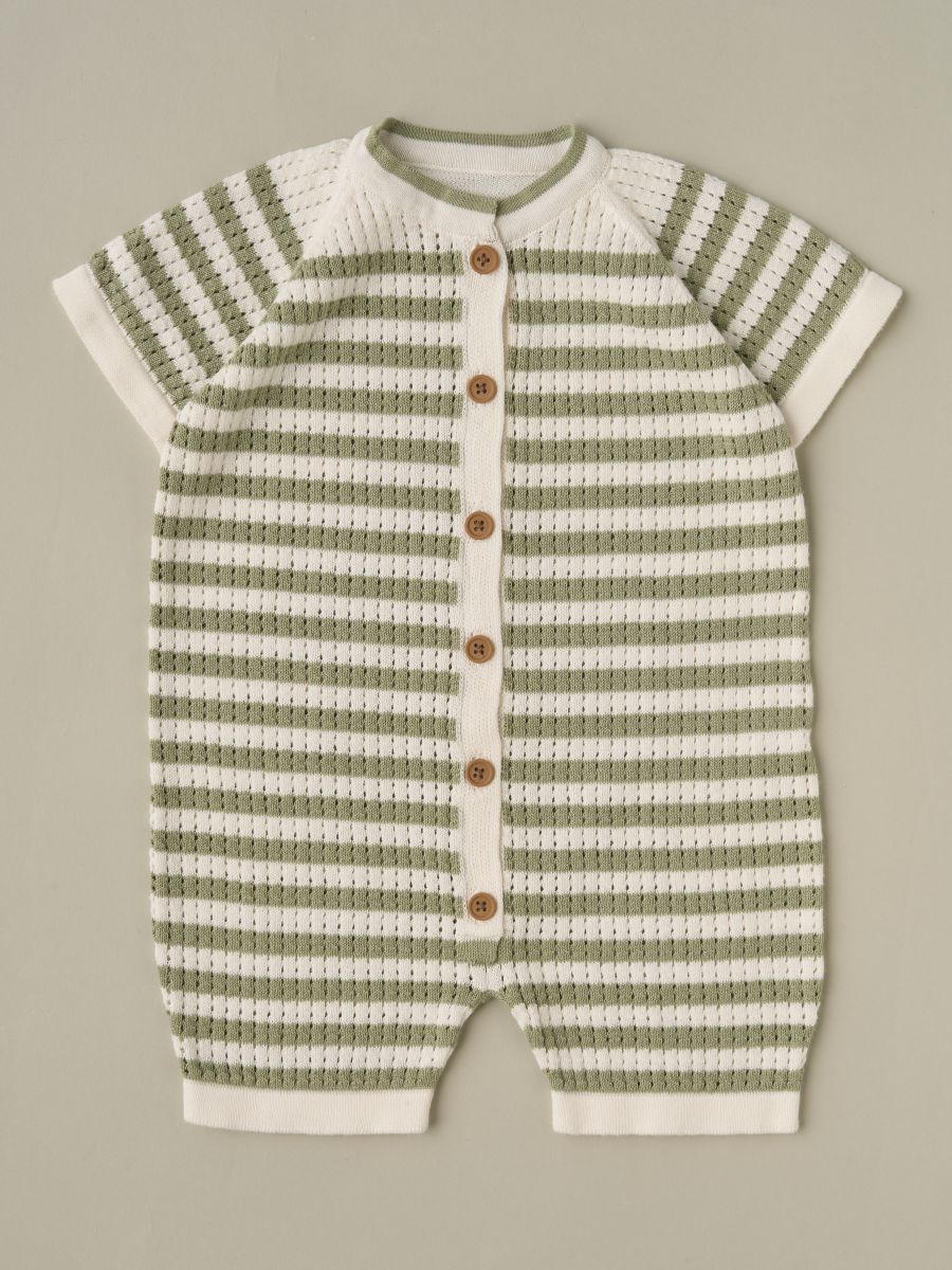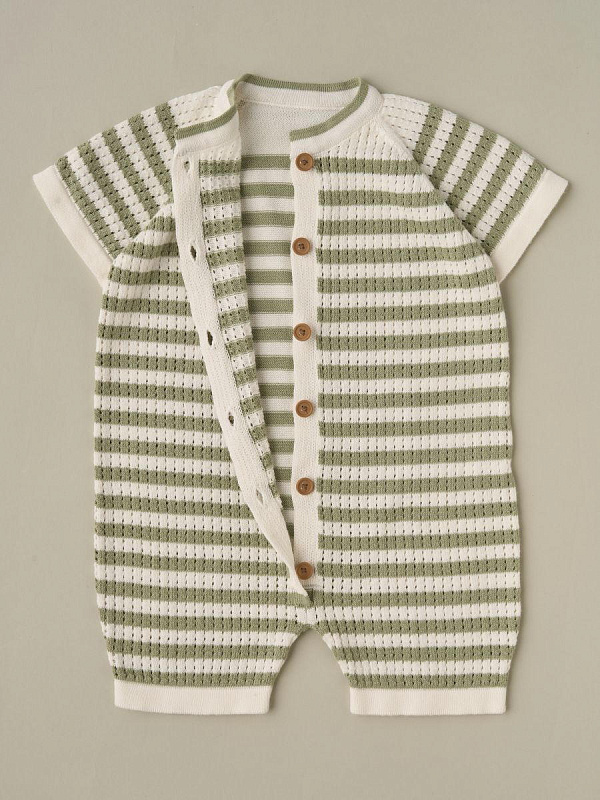 Песочник вязаный Little Star Полоска 0830 (ЧЗ-мз) нат. кремовый/серо-зеленый 62