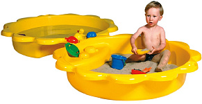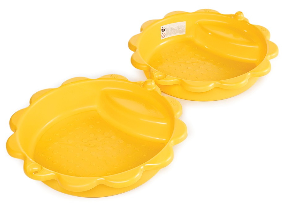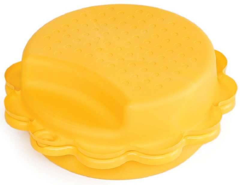 Просторная песочница в форме солнечного цветка, состоит из 2-х частей. Для защиты песка от дождя и грязи можно накрыть песочницу крышкой. Для удобства игры в ней предусмотрены выступы для сидения. Легко чистить и хранить. Идеально подходит для летнего отдыха на даче.