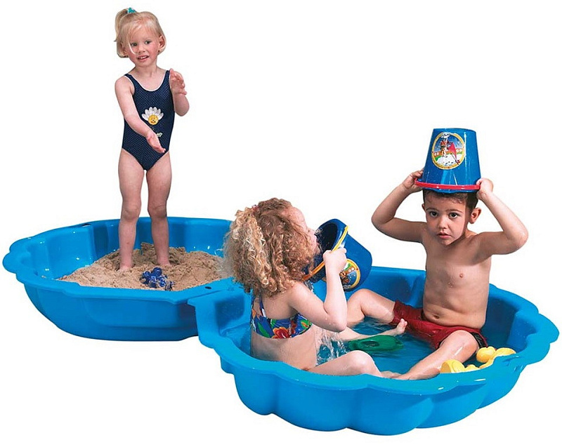 Универсальное сочетание песочницы и детского бассейна. Легко чистить и хранить. Идеально подходит для летнего отдыха на даче.