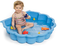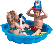 Универсальное сочетание песочницы и детского бассейна. Легко чистить и хранить. Идеально подходит для летнего отдыха на даче. Тент защитит содержимое от солнечных лучей и дождя.