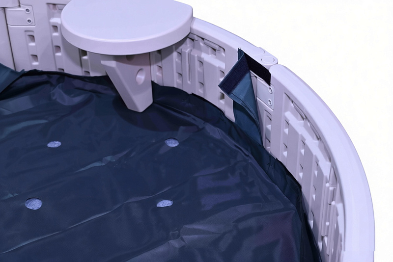 Конструкция оборудована специальным вкладышем из полиэстера, защищающим днище от попадания влаги и грязи. Вставка крепится на надежные липучки, легко снимается и быстро устанавливается обратно, позволяя родителям оперативно поддерживать чистоту игрового пространства.