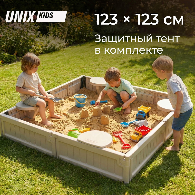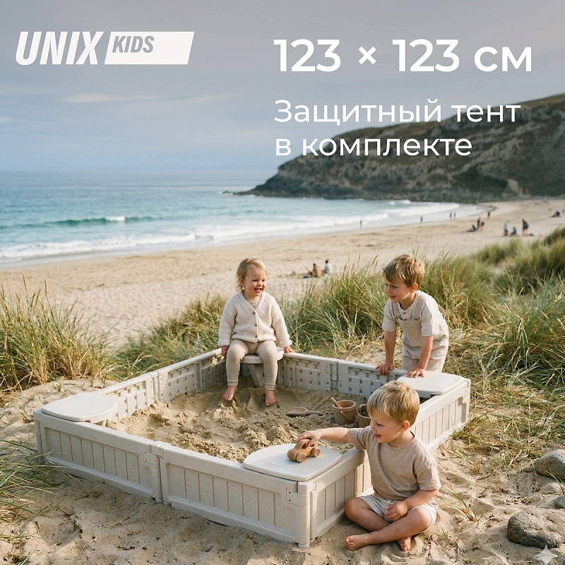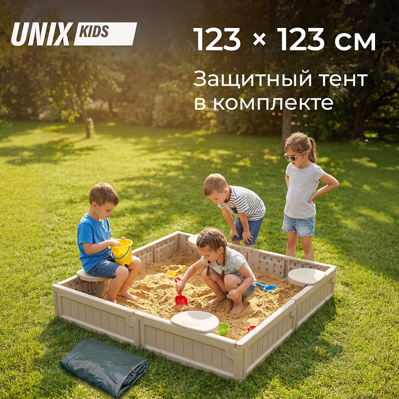 Песочница UNIX Kids квадратная Square 123х123 см бежевый