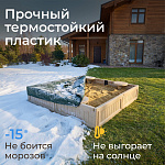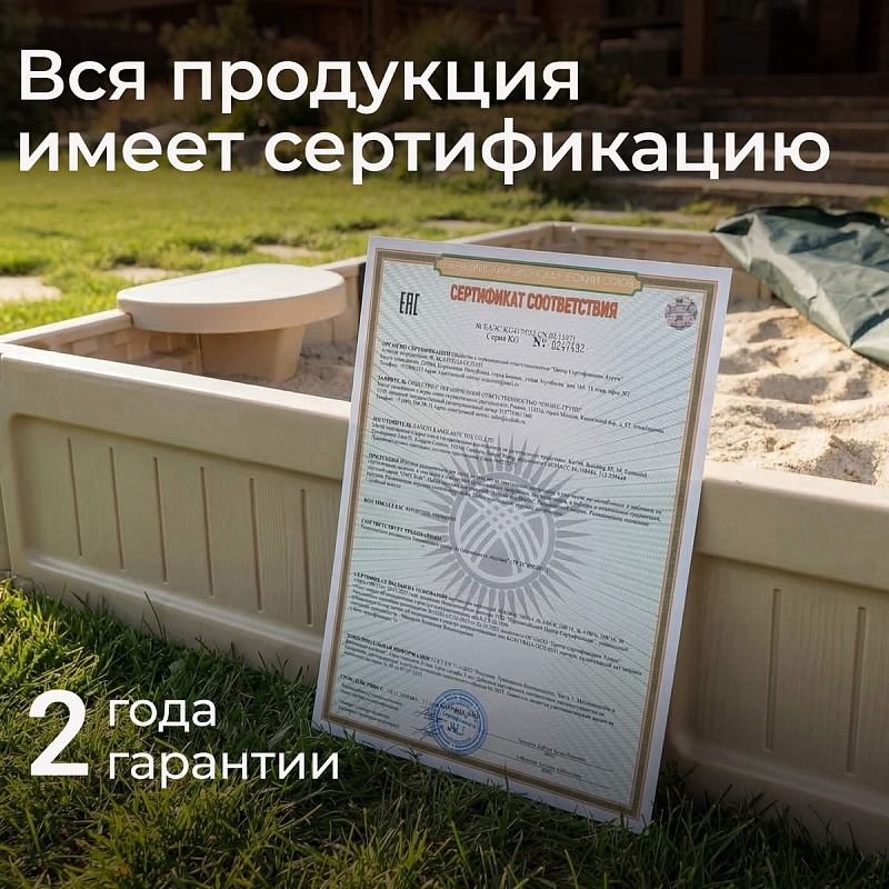 Материал изготовления — прочный термостойкий пластик, устойчивый к воздействию солнечных лучей и сохраняющий привлекательный внешний вид даже после длительного пребывания на открытом воздухе. Уличная пластиковая песочница сохраняет свою прочность и функциональность при температуре до -15 градусов, благодаря чему подходит для эксплуатации в регионах с холодным климатом. Специально разработанная форма без острых углов обеспечивает дополнительную защиту от случайных травм.