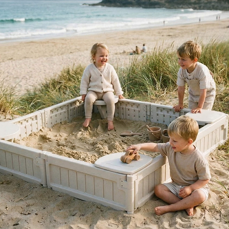 Универсальность использования позволяет устанавливать песочницу для малышей как на улице, так и в помещении, расширяя возможности организации досуга ребенка. Компактные габариты делают изделие удобным в поездках. Можно использовать как ограждение или заборчик для клумбы на даче.